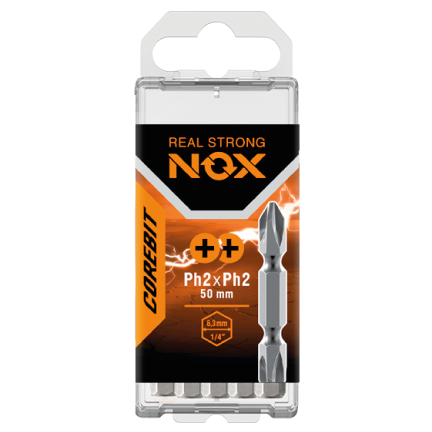 NOX COREBIT. Классические биты с высоким ресурсом; Сталь не сырая (S2), Правильная геометрия наконечника, Бюджетная цена Высококачественная бита Nox Corebit Long предназначена для работы с шуруповертами при монтаже/демонтаже крепежа. Изготовлена из легированной композитной стали стандарта ANSI S2. Это специальная комплексно-легированная сталь с повышенным содержанием углерода, которую можно отнести к группе инструментальных сталей. Твердость: 58-62 HRC Биты NOX изготовлены методом фрезеровки , что обеспечивает точность формы биты в соответствии со стандартом DIN и гарантирует высокий ресурс биты. Подходит для работы электродрелью со стандартным трёхкулачковым зажимным патроном и шуруповёртом с шестигранным патроном для быстрой смены насадки. Термическая обработка с использованием лазерного излучения позволяет сформировать тонкий поверхностный слой металла, имеющего определённую структуру, с целью получения высокой износостойкости поверхности без коробления подложки и негативного влияния на определённые желаемые свойства основного металла – такие, как пластичность или прочность.