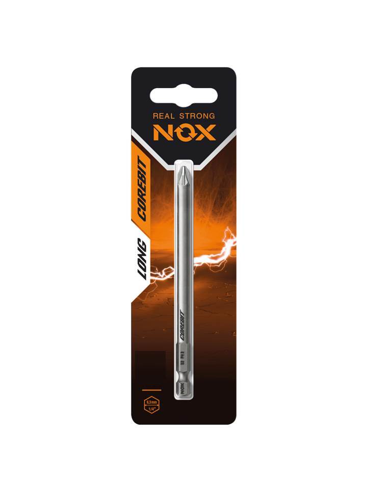 NOX COREBIT. Классические биты с высоким ресурсом; Сталь не сырая (S2), Правильная геометрия наконечника, Бюджетная цена Высококачественная бита Nox Corebit Long предназначена для работы с шуруповертами при монтаже/демонтаже крепежа. Изготовлена из легированной композитной стали стандарта ANSI S2. Это специальная комплексно-легированная сталь с повышенным содержанием углерода, которую можно отнести к группе инструментальных сталей. Твердость: 58-62 HRC Биты NOX изготовлены методом фрезеровки , что обеспечивает точность формы биты в соответствии со стандартом DIN и гарантирует высокий ресурс биты. Подходит для работы электродрелью со стандартным трёхкулачковым зажимным патроном и шуруповёртом с шестигранным патроном для быстрой смены насадки. Термическая обработка с использованием лазерного излучения позволяет сформировать тонкий поверхностный слой металла, имеющего определённую структуру, с целью получения высокой износостойкости поверхности без коробления подложки и негативного влияния на определённые желаемые свойства основного металла – такие, как пластичность или прочность.
