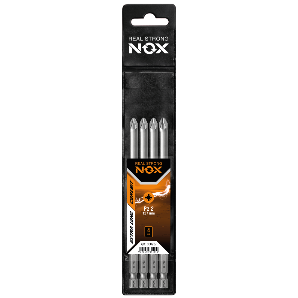 NOX COREBIT. Классические биты с высоким ресурсом; Сталь не сырая (S2), Правильная геометрия наконечника, Бюджетная цена Высококачественная бита Nox Corebit Long предназначена для работы с шуруповертами при монтаже/демонтаже крепежа. Изготовлена из легированной композитной стали стандарта ANSI S2. Это специальная комплексно-легированная сталь с повышенным содержанием углерода, которую можно отнести к группе инструментальных сталей. Твердость: 58-62 HRC Биты NOX изготовлены методом фрезеровки , что обеспечивает точность формы биты в соответствии со стандартом DIN и гарантирует высокий ресурс биты. Подходит для работы электродрелью со стандартным трёхкулачковым зажимным патроном и шуруповёртом с шестигранным патроном для быстрой смены насадки. Термическая обработка с использованием лазерного излучения позволяет сформировать тонкий поверхностный слой металла, имеющего определённую структуру, с целью получения высокой износостойкости поверхности без коробления подложки и негативного влияния на определённые желаемые свойства основного металла – такие, как пластичность или прочность.