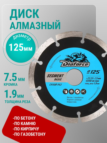 Алмазные диски Dia for ce Basi c предназначены для резки бетона, натурального и искусственного камня, кирпича, а так же