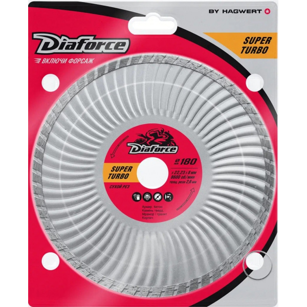 Диск алмазный DIAFORCE SUPER TURBO 180х22,23х8х2,6 мм сухой рез