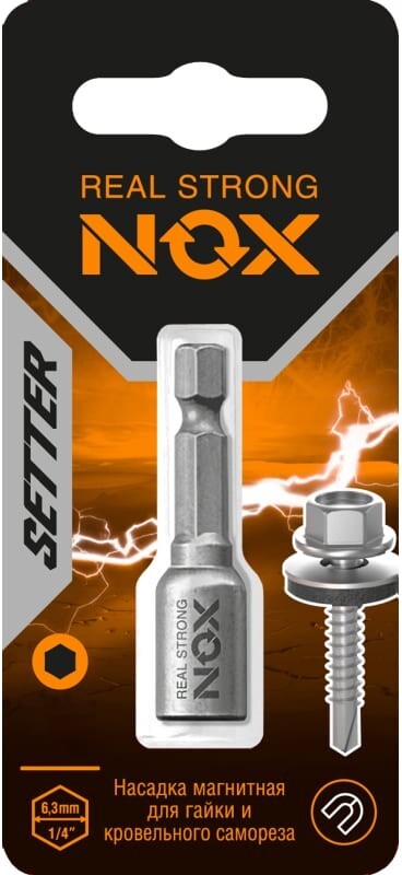 Ключ-насадка Setter. Ключ-насадка магнитная. Держатель оснащен мощным неодимовым магнитом надежно удерживающим насадку, облегчая работу и ускоряя процесс замены. Для металла, Для металлического профиля, Для монтажа, Для поликарбоната, Кровельный