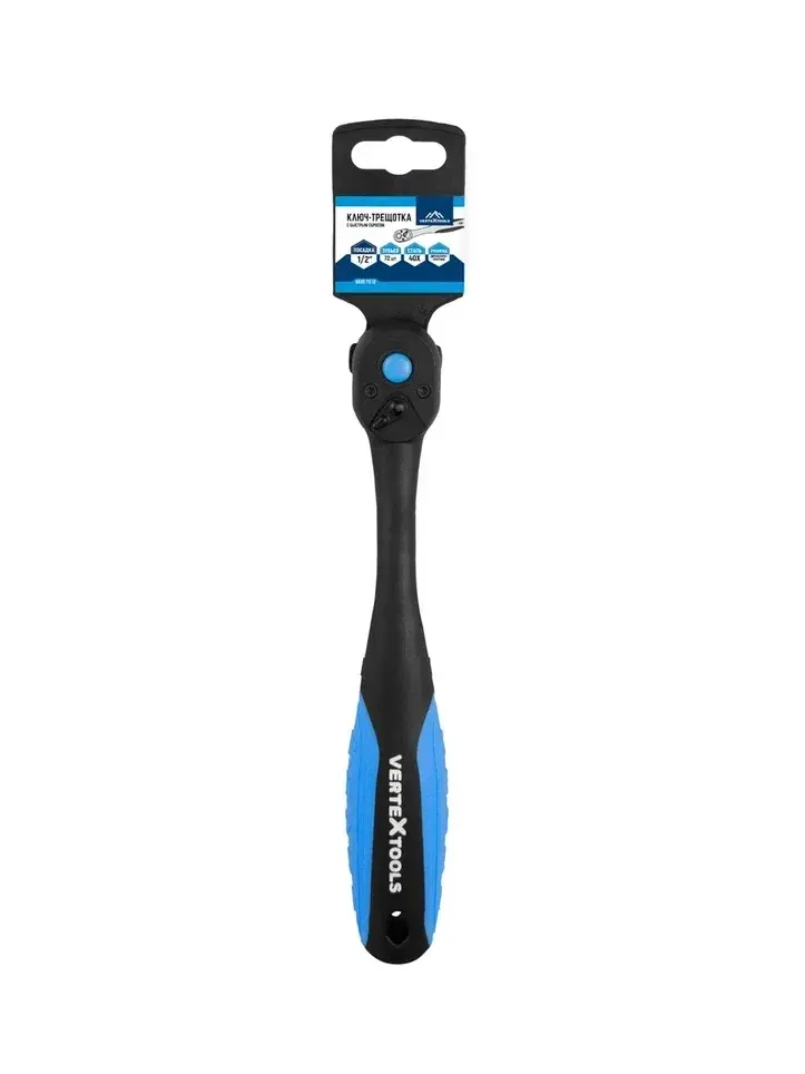 КЛЮЧ-ТРЕЩЕТКА 1/2, 72 ЗУБА, С БЫСТРЫМ СБРОСОМ, CRV, ДВУХКОМПОНЕНТНАЯ РУКОЯТКА VERTEXTOOLS (1/ 6/ 36)