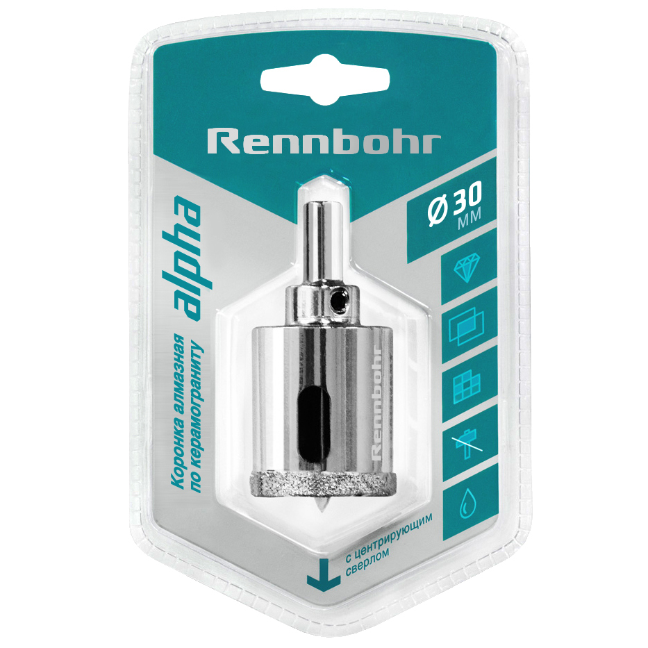 Коронка алмазная с центрирующим сверлом по керамограниту и керамике 30 мм "Rennbohr"