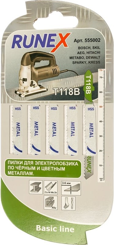 Полотна RUNEX - высокая износостойкость, стабильное, постоянно контролируемое качество. Торговая марка Runex известна высоким качеством и широким ассортиментом выпускаемой продукции. Пилки для электролобзика Runex отличаются специальной закалкой металла и острыми зубьями с оптимальным углом наклона, что позволяет добиться желаемого результата быстро и с минимальными усилиями. Они подходят для использования с электролобзиками многих известных марок: Bosch, Skil, Kress, Hitachi, Metabo, Dewalt, Sparky, AEG.