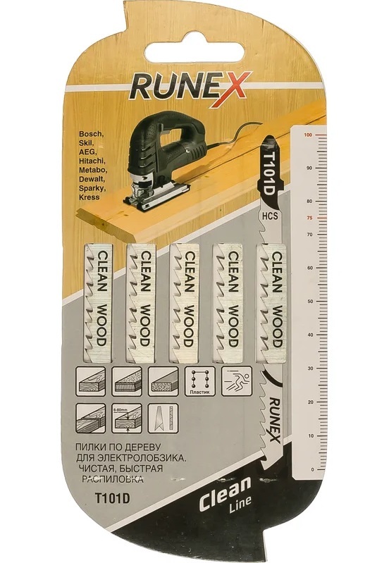 Пилки100x75 мм. 6з/д(древесина,ДСП,пластмасса h=6-60mm)быстр.чист.распил.T101D 5шт/уп "Runex"