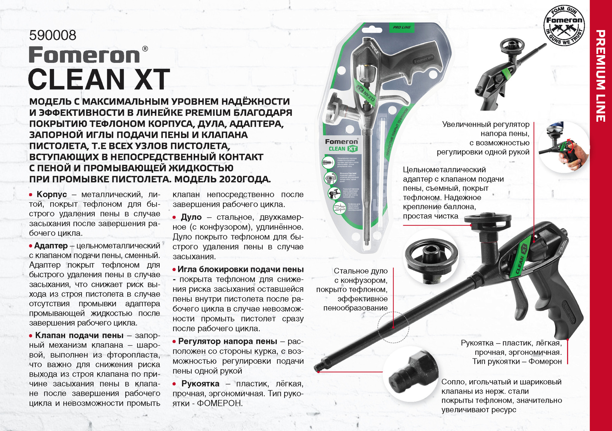на длительное время без риска засыхания пены в пистолете и выходе его из строя.