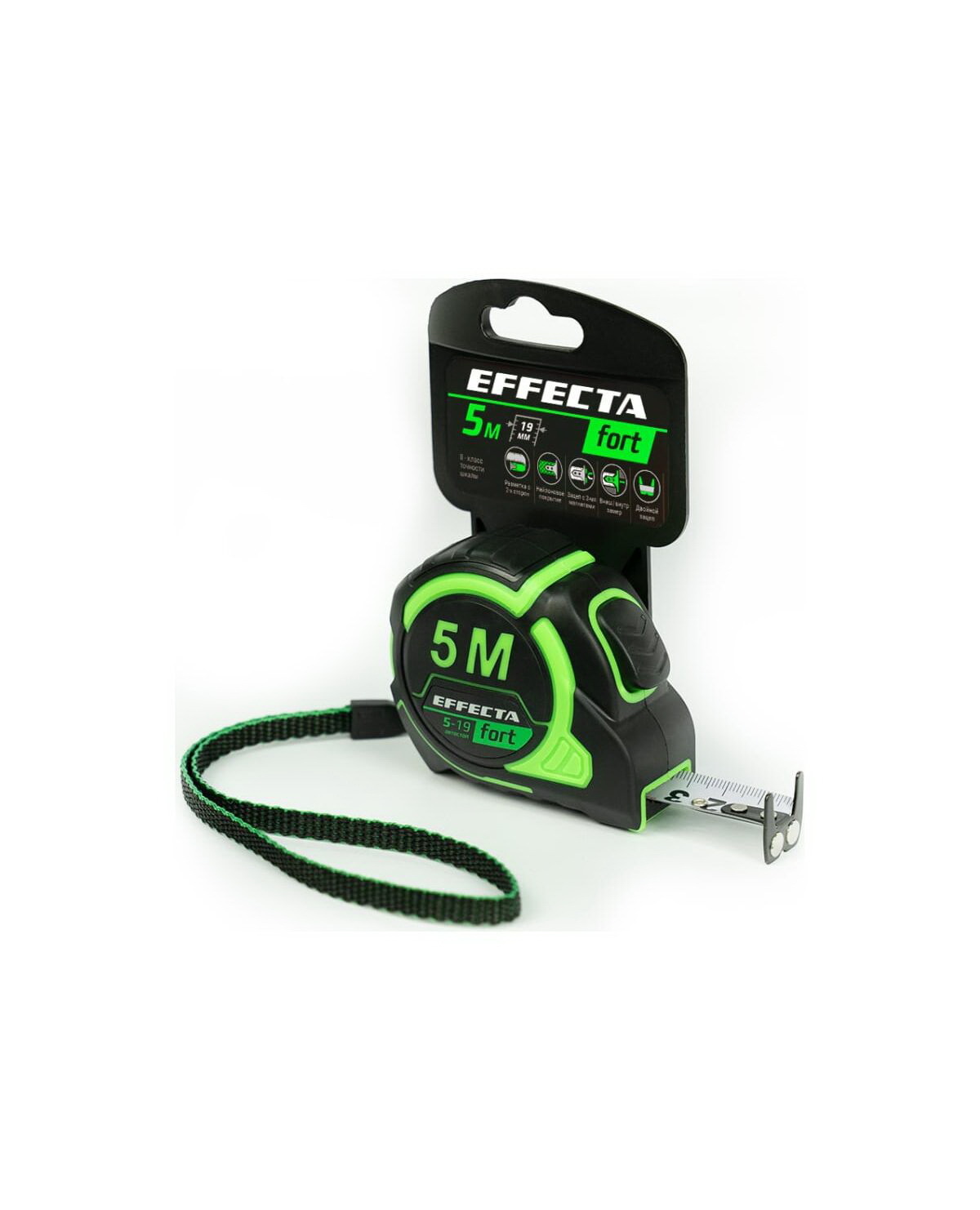 Рулетка Effecta Fort 5м/19 мм, магнит, автостоп, лента -2стор шкала- нейлон