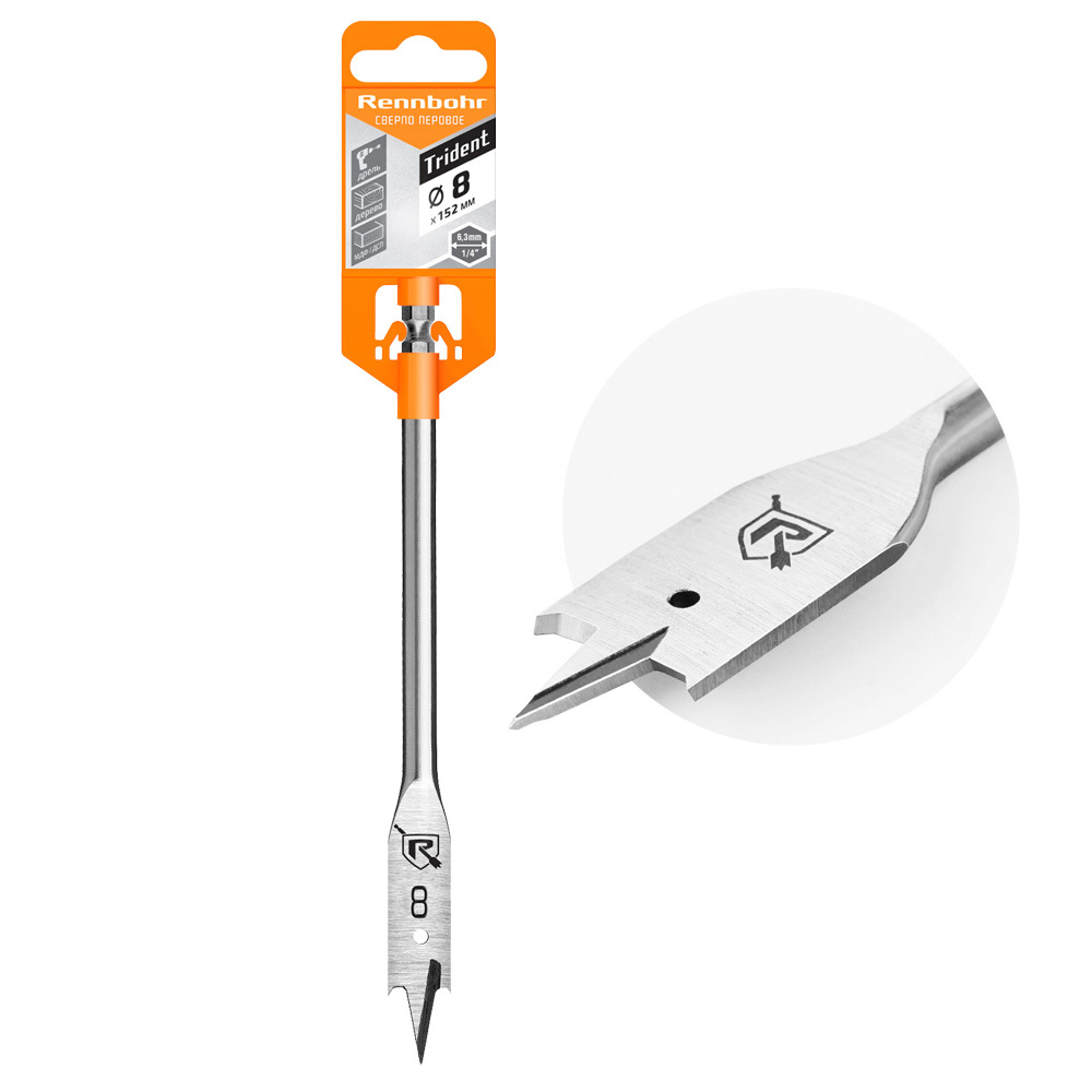 Сверло по дереву перовое 8 х152мм "Rennbohr"