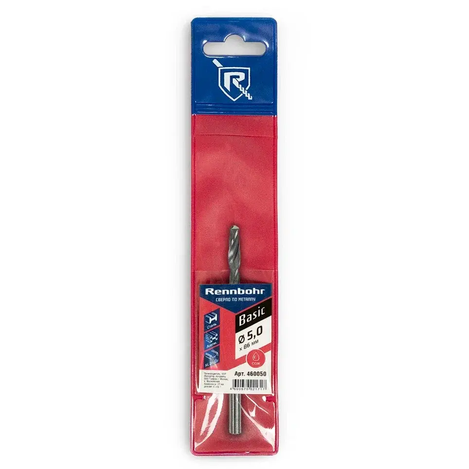 Сверло по металлу, ЦХ, 5,0x86мм, HSS-R, 1шт/уп, RENNBOHR BASIC