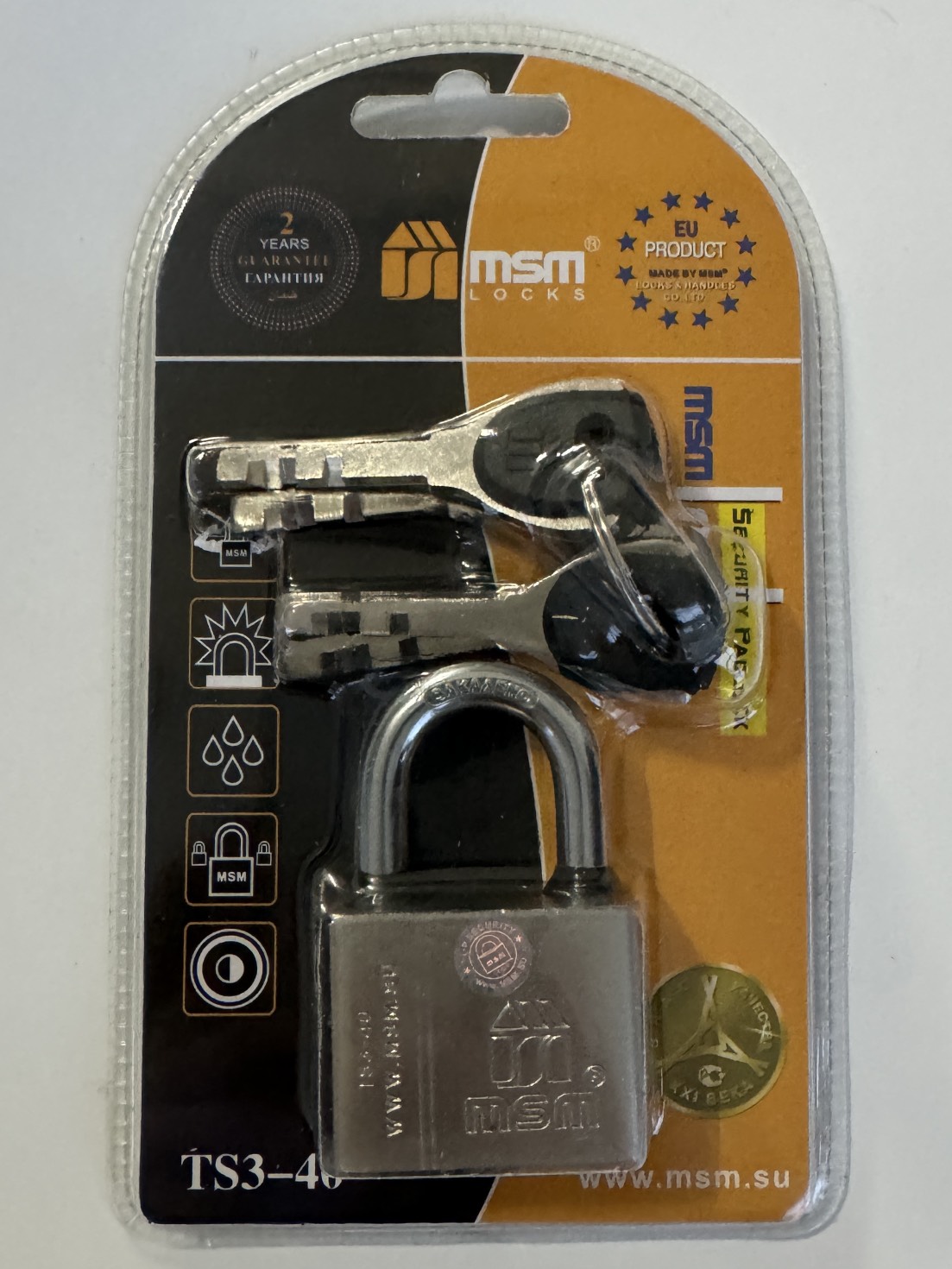 Замок навесной MSM TS3-40 сталь Blister 4 ключей