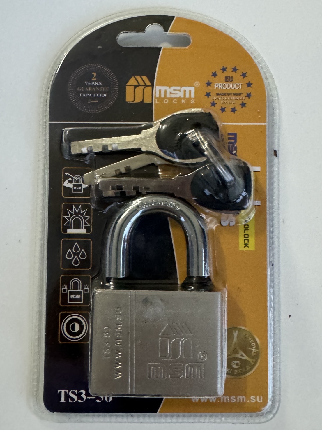 Замок навесной MSM TS3-50 сталь Blister 4 ключей