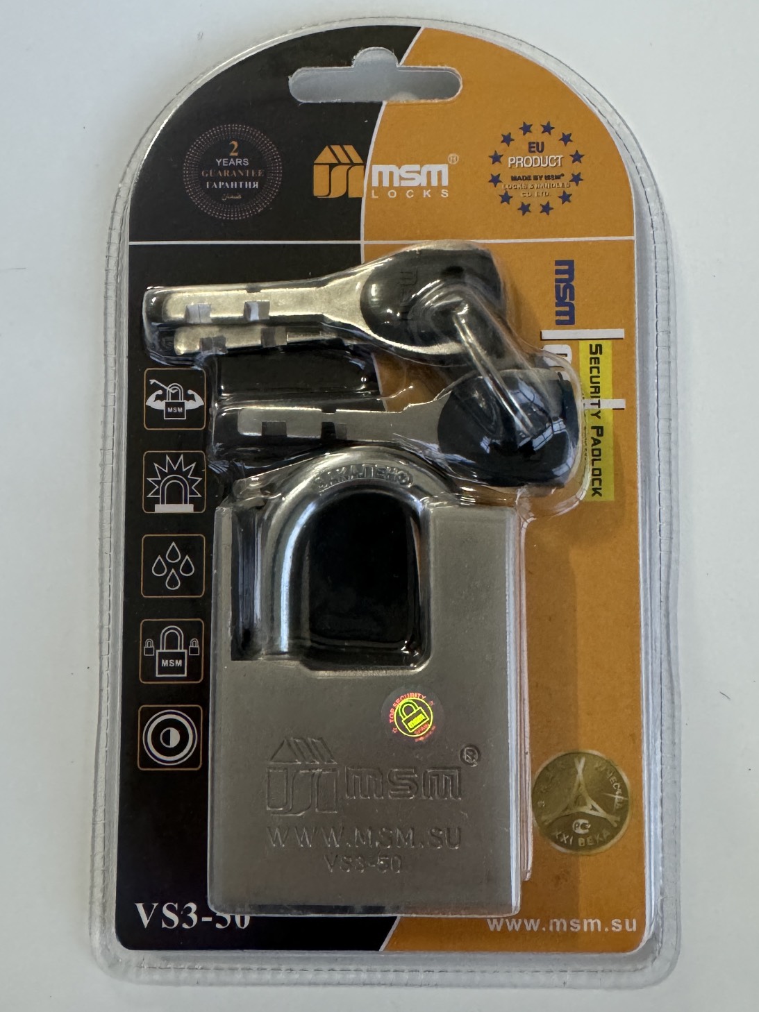 Замок навесной MSM VS3-50 Blister 3 ключей